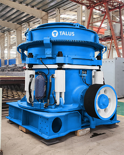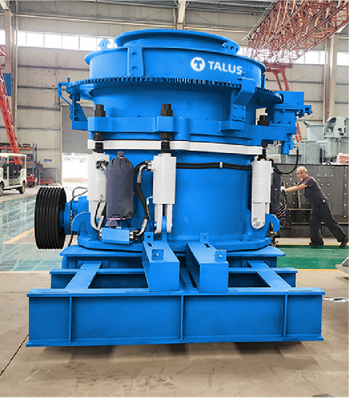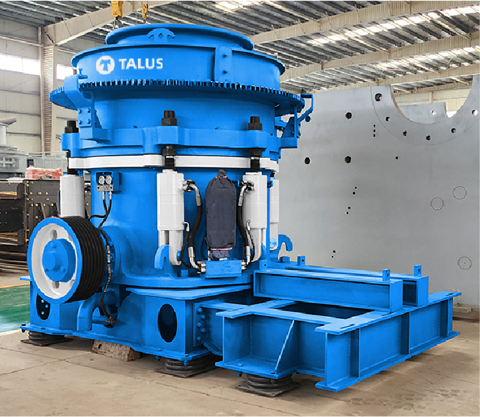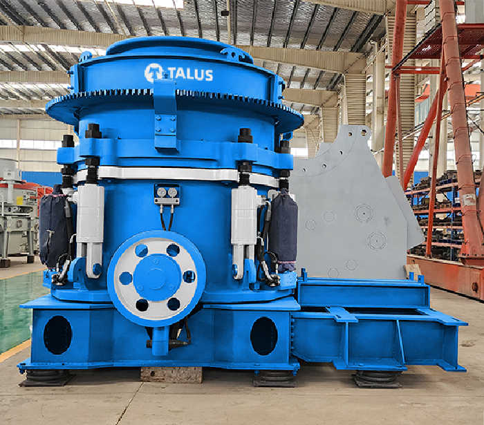 The multi cylinder hydraulic cone crusher is developed and manufactured by Talus Equipment Manufacturing incorporating foreign technology. It is suitable for crushing various ores and rocks with medium and above hardness, primarily used in secondary and tertiary crushing in the fields of metal mines and construction sand and stone. With its high rotational speed, large crushing capacity and special design, it insures excellent cubic product. The machine features a high-strength casting steel frame, an alloy material forged main axis, a high-precision straight bevel gear transmission structure and a multi-cavity selection and automated operation control system, which perfectly showcase its performance and advantages. This machine is available in standard and short head core types. Generally, the standard type has a larger feeding particle size and coarser discharge particle size, while the short head type has a steeper and smaller feeding size, making it suitable for producing fine-grained materials. Therefore, the standard type is generally used for coarse and medium crushing, while the short head type is used for medium and fine crushing.